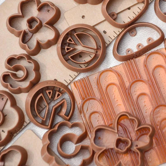 Hello Myrrh Shape Cutters are 3D printed from PLA, a biodegradable plastic. They are specifically designed to be used with Polymer Clay.